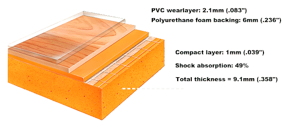 * Flame spread rating as per ASTM E 648 - Critical Radiant Flux 0.45 watts/cm2 , or more (Class 1). As per ASTM E 662, smoke (4 minutes) - 450 or less. Other formulations can be made available on a special order basis. Call Taraflex for pricing, availability and minimum requirements. Numerical ratings do not necessarily constitute product performance under actual fire conditions. They are merely provided for product classification purposes.